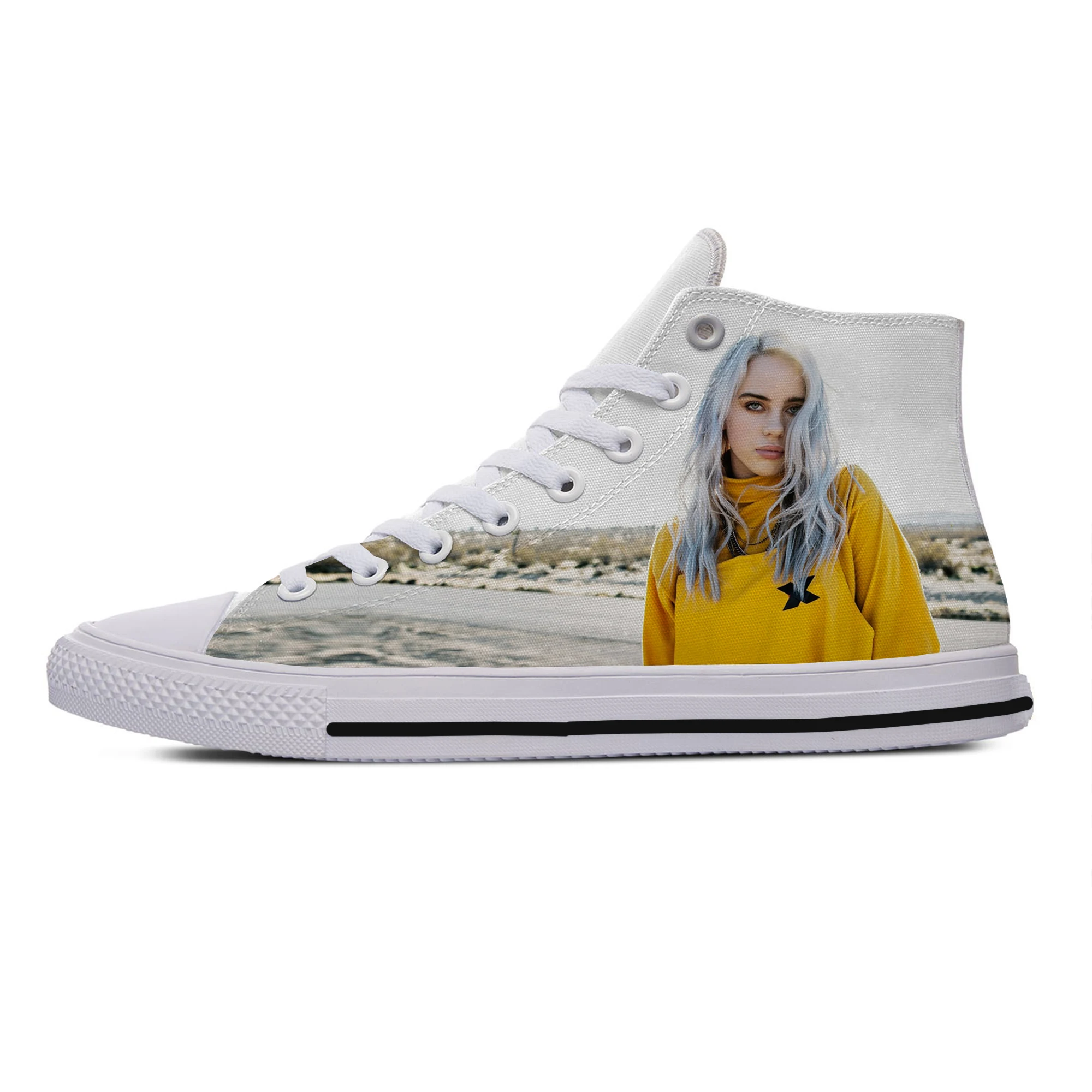 Summer Customize Billie Eilish High Top Shoes Adults Male Canvas Lightweight Sport Sneaker Mens Lace Up Flats White Black